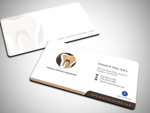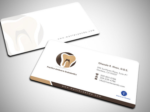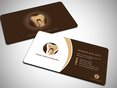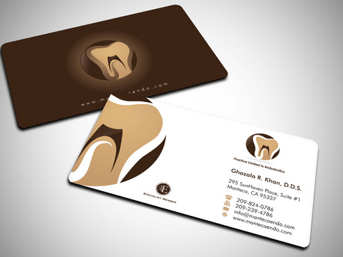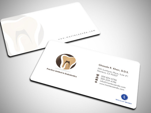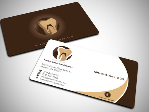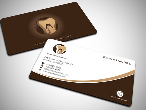 Business card should have 2 logos, one brown and gold one with a tooth image....that is my main logo. The second logo( the one that says aaespecialist member) which I have uploaded as well can be in a corner or anywhere on the card. basically it is your choice where it goes on the card. It does not have to be the same size as my main business logo. This second logo only needs to be on the business cards. it can be black and white or color. I will leave that decision to you so if you think the colored logo goes with my logo colors, then use that. If not then, use the black and white one. I will prefer it in color. Under my name on business card, please write the following in smaller font Practice Limited to Endodontics LETTER HEAD: deisgn does not need to have the second logo (aaespecilaist member logo). It should have my main business logo ( gold and brown one) with business name and all the other info like address, phone, fax web/email. ENVELOPE: only main business logo with business name and address. Please do not include phone/fax/ email or any other logos on the envelope. Thank you.