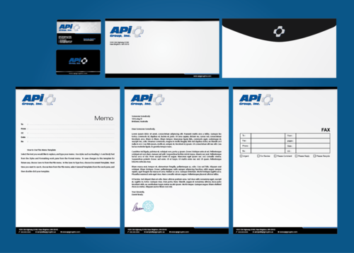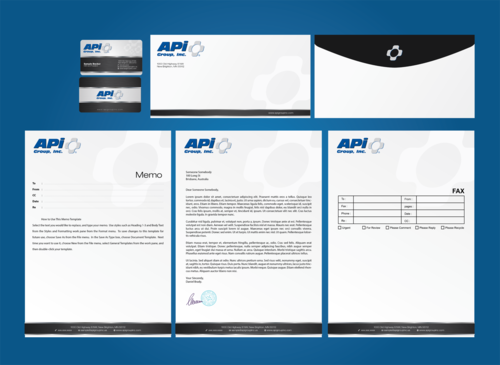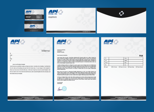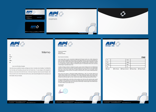 Please include business card, letterhead, fax form, memo and envelope examples.