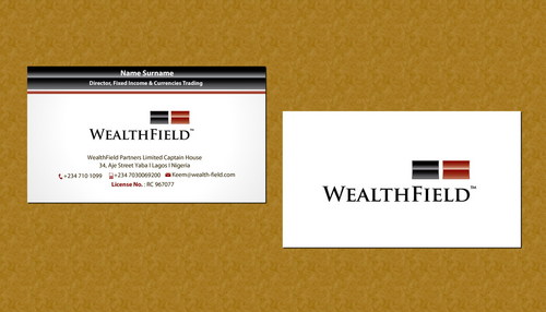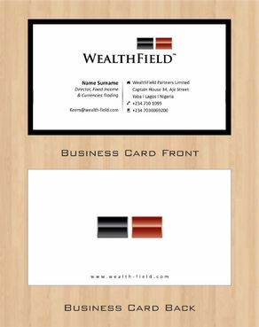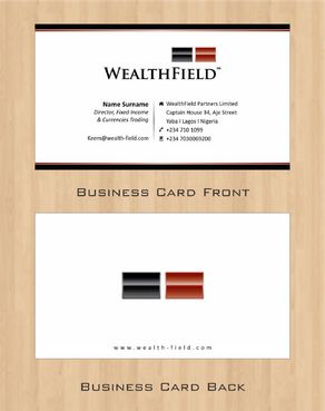 For Letterhead and Envelope, Details are; WealthField Partners Limited Captain House, 34, Aje Street Yaba I Lagos I Nigeria contact@wealth-field.com +234 (1) 7101099