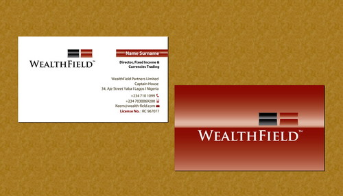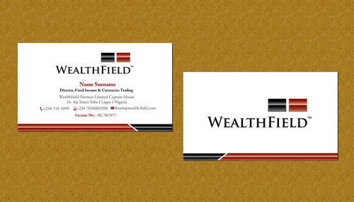 For Letterhead and Envelope, Details are; WealthField Partners Limited Captain House, 34, Aje Street Yaba I Lagos I Nigeria contact@wealth-field.com +234 (1) 7101099