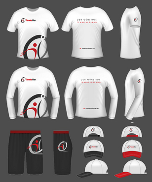 Hello, We have a new logo for our Tennisshop and brand: which you should use: http://www.tennisman.de/images/big_letter_red_grey.ai We have a second version of the logo, maybe this fits better?: http://www.tennisman.de/images/big_letter_red_grey2.ai But you don´t have to put the Tagline: Der günstige Tennisversand under the Logo and we also don´t Need the .de at the end of Tennisman Yesterday a good designer made for us Business Cards: http://www.mycroburst.com/contests/tennisman-de-business-card-and-letter-design. Look at the winner, maybe you can make us a design for a Tennisshirt, a Tennisshort and a Tenniscap which fits to this design. Short gray and the t-shirt White with the tennisman.de Colors. Also you can make other color variations of the short and the Shirt. White short, blue t-shirt, red t-shirt and so on.
