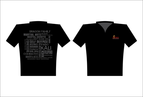 Vector copy required. Large dragon in word collage on back of tshirt. Small dragon over right chest with tag line. Collage needs to include these words: Martial Arts, Dragon Family, Jeet Kune Do, grappling, Filipino, self-defense, boxing, judo, kick, punch, Gung fu, wing chun, kung fu, kali. Other words can elaborate on the benefits of martial arts training: self-discipline, respect, courtesy, mental growth, physical health, modesty, perseverance, integrity, virtues. Review www.dragonfamilyma.com for better understanding of our school.