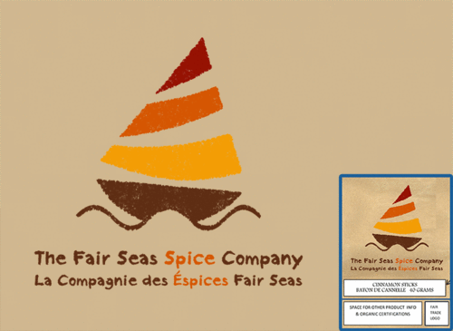 In addition to the logo, the company name will have to be displayed in both English and French as, ”The Fair Seas Spice Co. “ and “ La Compagnie des Épices Fair Seas”. At the very bottom of the label a Fairtrade certified logo measuring 1.6 cm x 1.6 cm will be printed. Please refer to the attached image to view the placement and sizing of the logo image.