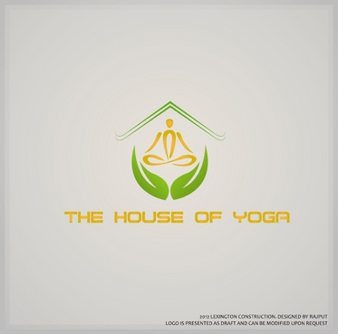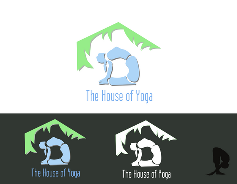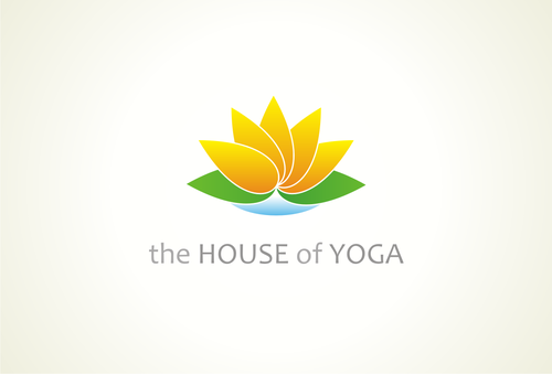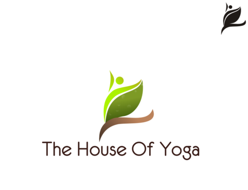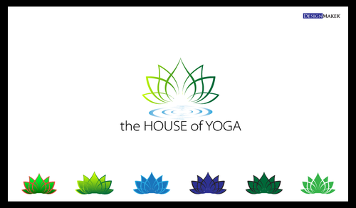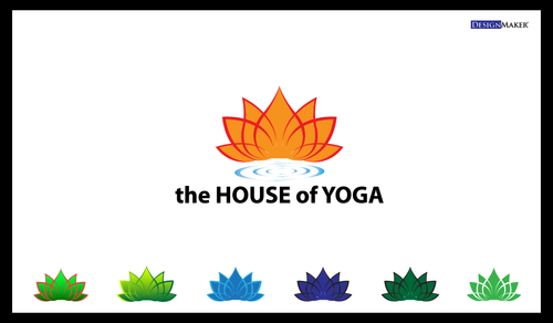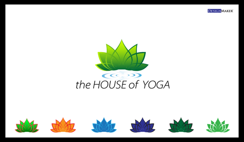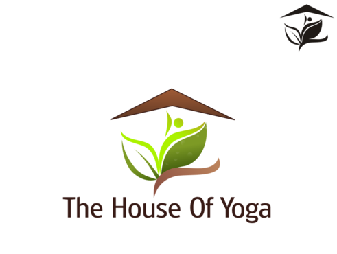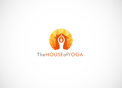 This design should include a green yoga house to depict that we are a green studio, and should include an element of fire or heat to convey that the Yoga Studio is a Hot Yoga Studio.