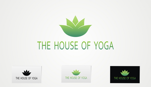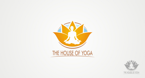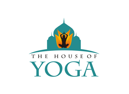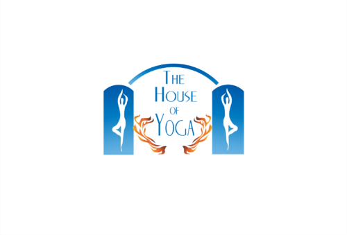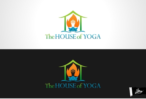 This design should include a green yoga house to depict that we are a green studio, and should include an element of fire or heat to convey that the Yoga Studio is a Hot Yoga Studio.