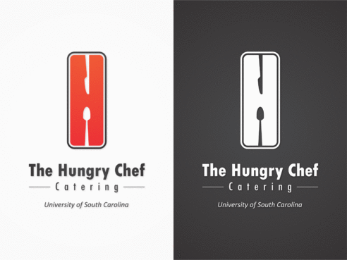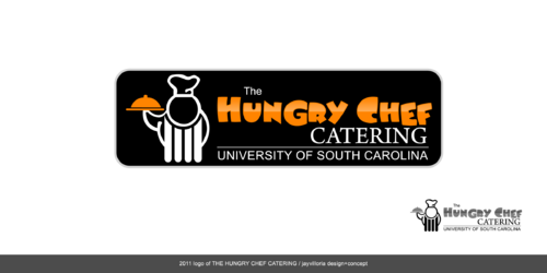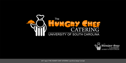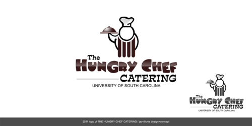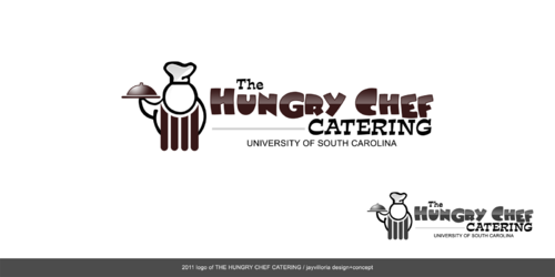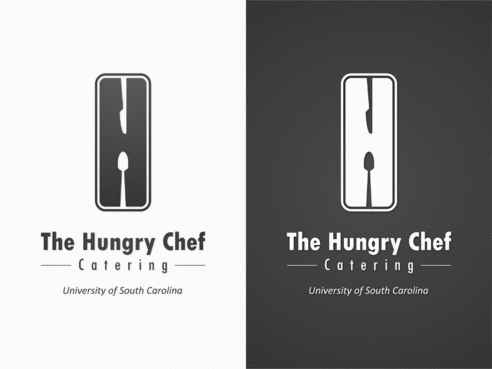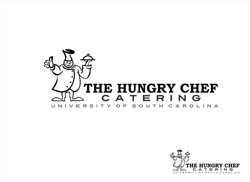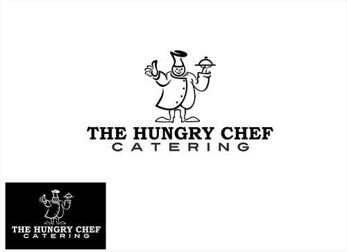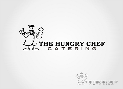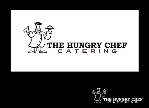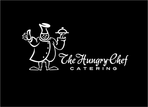 I want to logo to say "The Hungry Chef Catering" in a font that is professional and classy, but also simple and very easy to read. I would like a picture of a chef, included in the logo, in a basic outline style that can be used as a symbol to represent my company. I want the chef to appear fat and happy. Thanks so much!
