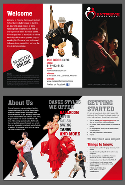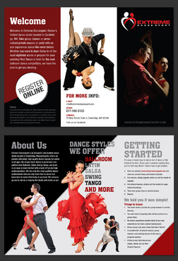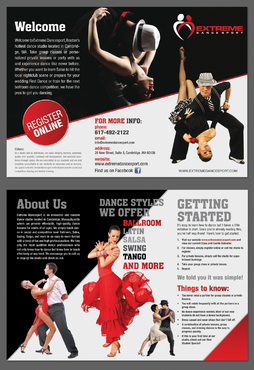 Please try to use our logo and website color scheme. Keep it simple, minimize wording, and use high quality images of dance couples. We don't offer solo dancing so it would be best to use images of dancing couples.