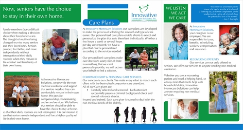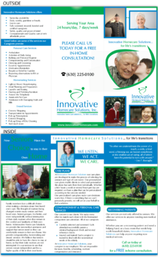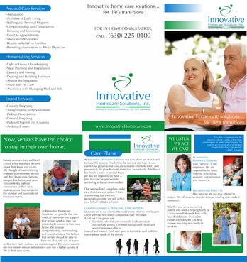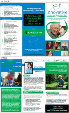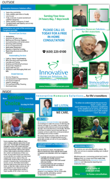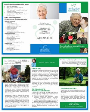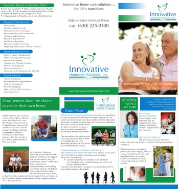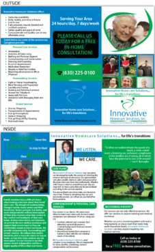 Must be catchy and pleasing to the eye to potential high-end customers, referral sources such as doctors or hospital discharge planners, or family members BUT AT THE SAME TIME, must be easy to read for elderly people with eye/vision problems.