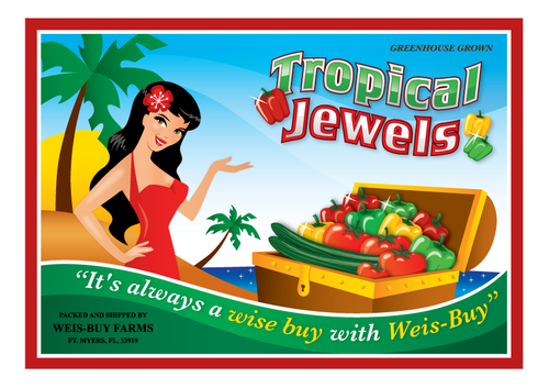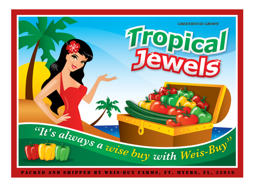 Tropical Jewels; Packed and Shipped by Weis-Buy Farms, Ft. Myers, FL, 33919