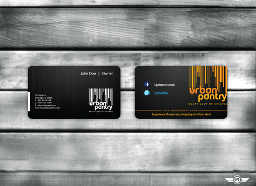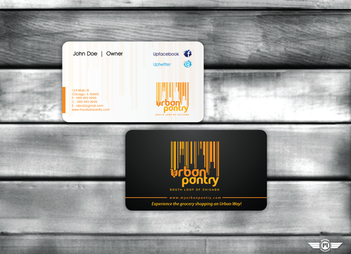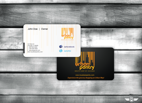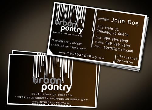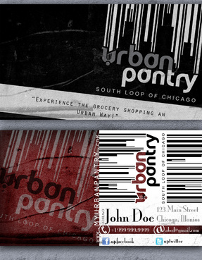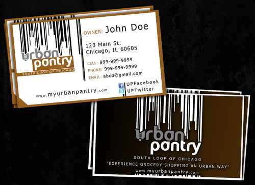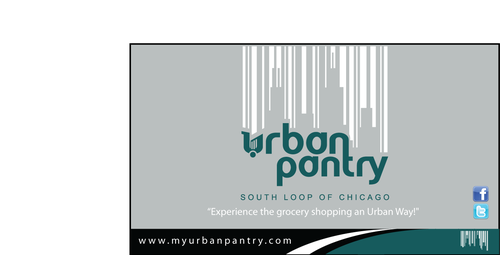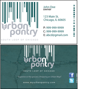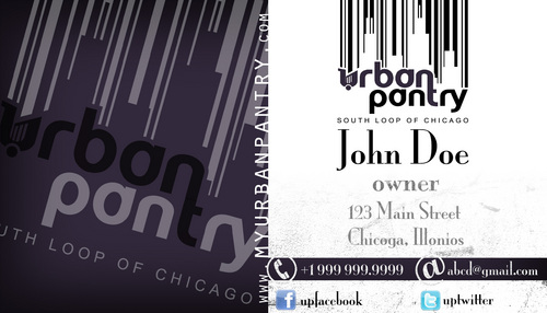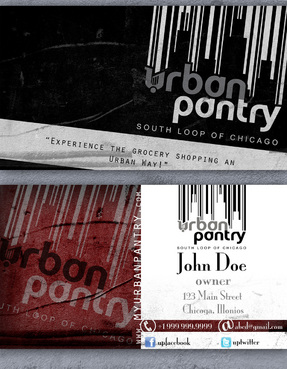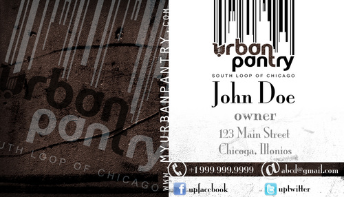 We are thinking that back of the business card would cover entire logo as a whole along with the website and/or tagline - "There are local grocery stores and there is the Urban Pantry. Experience the grocery shopping an Urban Way!"