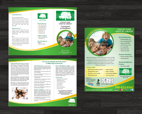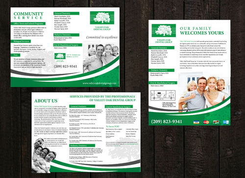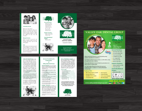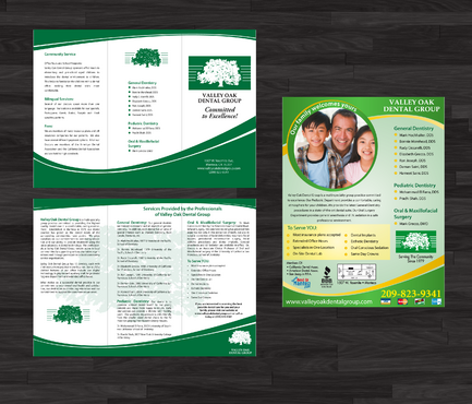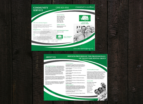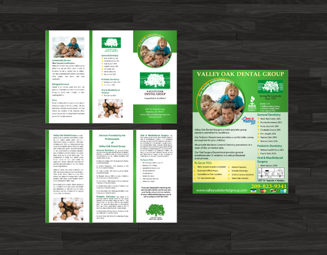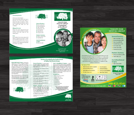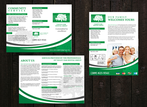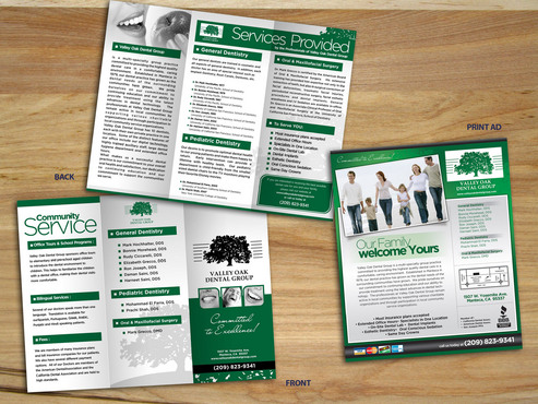 Maintain integrity of oak tree logo along with green color Trifold must be two colors only text of draft can be modified but basic info must remain the same-clean lines and simple if possible. Magazine ad can be multicolored.
