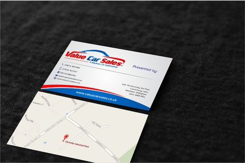 Please put map on back of card showing our address details. You can get this from google. Please put presented by : and leave blank on business card so salesman can write their mame in.