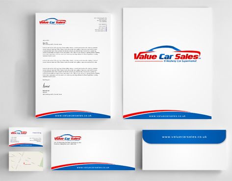 Business cards, letterhead and fax cover sheet for automotive company