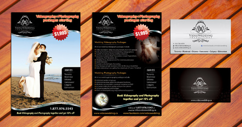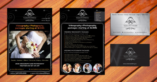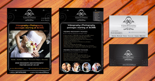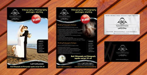 Hi, I like the card on top, but please don't include my contact info... It should include things like "Toronto, Montreal, Ottawa, Vancouver, Calgary, Edmonton", website videowedding.ca, phone 1.877.976.5543, email info@videowedding.ca and facebook www.facebook.com/videowedding
