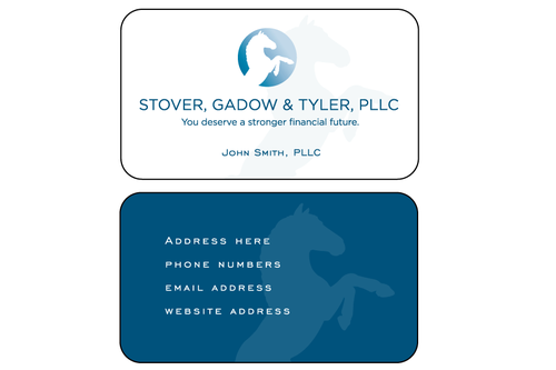 We had thought of embossing some type of money/dollar sign on business card to get people's attention. Maybe try something solid or timeless to convey dependability. We want something relevant to us.