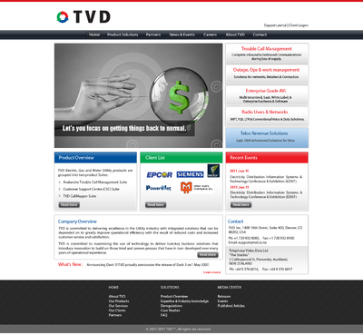 TVD is a software company focussed on Operations Management and Operations Intelligence systems for Utilities (Elec, Gas, Water), Transport/Logistics companies, and Radio network users. We have been in business for 10+ years and have clients all over the world. Our products are robust, credible, and meet the needs of these customers.