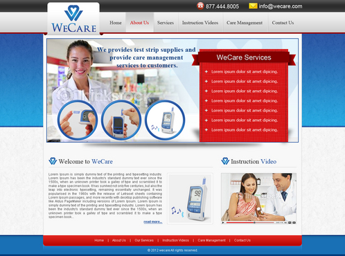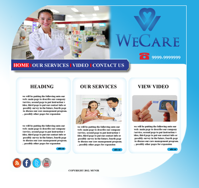 we will be putting the following onto our web: main page to describe our company/service, second page to put instruction video, third page to put our contact info or possibly survey in the future, fourth page to discuss our care management program... possibly other pages for expansion