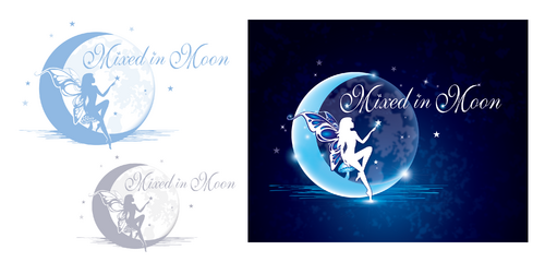 The background of the logo will be a deep blue to black gradient, like a night sky. (Black at the top to blue at the bottom) I want the finished logo to be on a transparent background to place on my website, but present it for me to view on a blue to black gradient so I can see how it will look. The moon and stars should be white, but the fairy could be white or even transparent, if she is large enough. If any other colours are used then blues and whites. ================update=================== If any other colours are used then other shades of blue, and black could also be good as a silhouette.