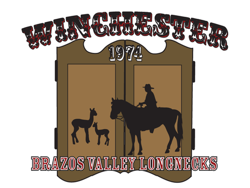 Barbara and myself met at the Winchester Club in 1974. We just bought an Alpaca Ranch in Washington County, Texas. The Club had swinging bar-room doors. If we can somehow incorporate Winchester 74, swinging doors, and maybe the Winchester Logo with a cowboy riding a horse in the logo, that would be great. We will build a large ranch sign at the main entrance with the chosen logo.