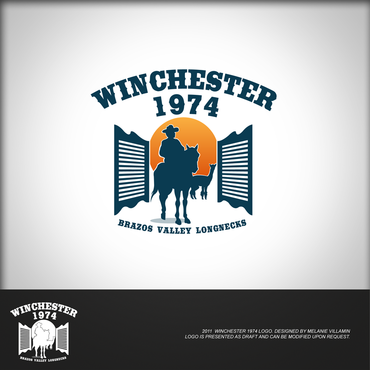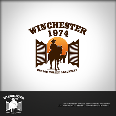 The design should incorporate the Winchester 1974, Swinging Doors, Winchester logo with Cowboy on Horse and any of the above offered information. The final logo will be cut out of Steel and welded to the entry sign at the ranch.
