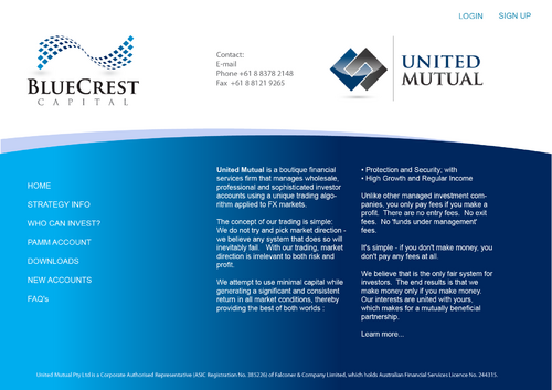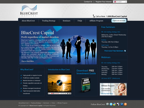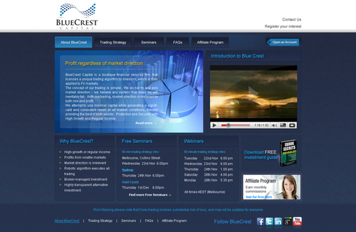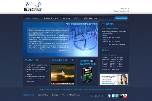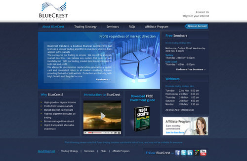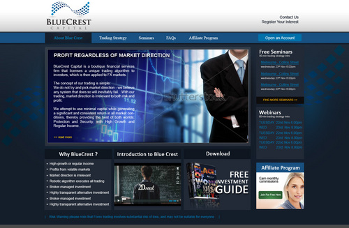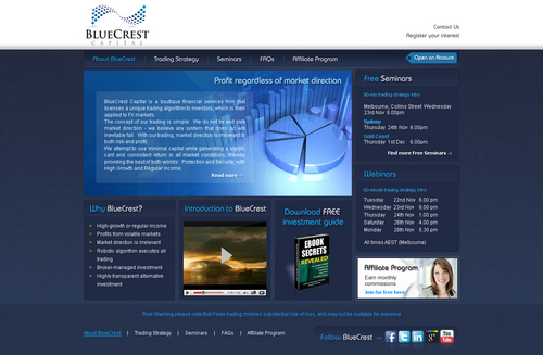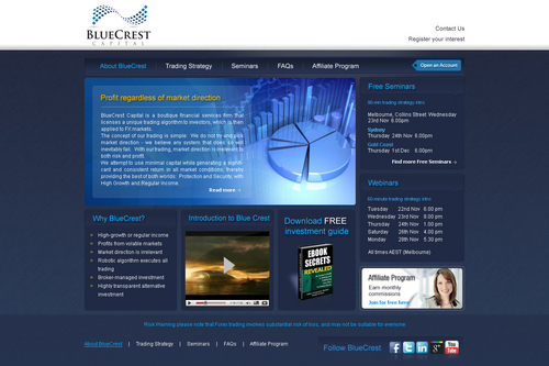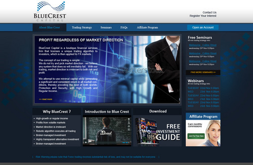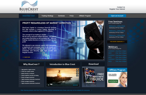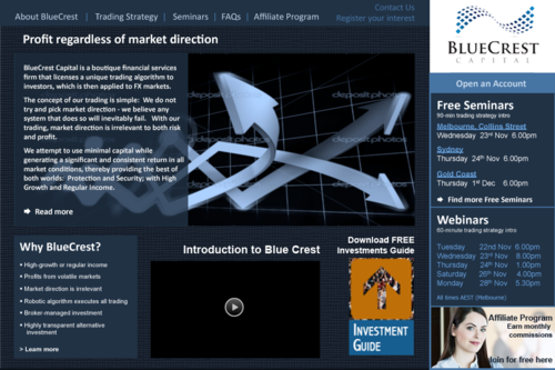BlueCrest Capital is a financial services firm that manages investments in foreign exchange (FX) markets, to produce consistent and significant returns for everyday retail investors. The service offers a higher-return alternative to the typical direct investments in shares & property.