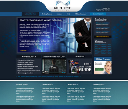 Please refer to the design brief downloadable at this link and the related comments that follow: https://www.yousendit.com/download/T2dlWmdxV3JkMnRESjlVag Notes on the design mock-up: 1. The two slides in PPT represent the home page and then a content page. 2. The dark blue background (1,25,41) is not a fixed choice, however we do like this kind of deep dark greyish blue. Feel free to vary it a little. Also we like the idea of the background having texture and/or gradient. 3. The content used is the actual content except for the 3 images used in the bottom section of the home-page mockup 4. The placement of items on the page is fixed. We want the content to be located where we have placed it. 5. We would like our logo to appear on a white background, however we want the page to mostly have the dark blue background. Feel free to vary the treatment of the header bar. 6. we are open to seeing the top navigation bar being incorporated into the header bar, however we are concerned it will look cluttered 7. For body text we think Arial is the way to go, but are open to other suggestions. For header and link text you will see we have used Calibri, but are open to alternatives. We are interested in seeing a professionals view of how to use different font colours, particularly the blues used in our logo. 8. We want a clean, professional, trustworthy, established, corporate feel for the design. COMMENTS ON REFERRED WEBSITES url 1: we like the modern corporate feel of this site and the use of the deep greys url 2: we really like the use of texture in the backgrounds of this page url 3: while we do not want a white background site, we do like the clean design of this site and we like the dark blue they have used